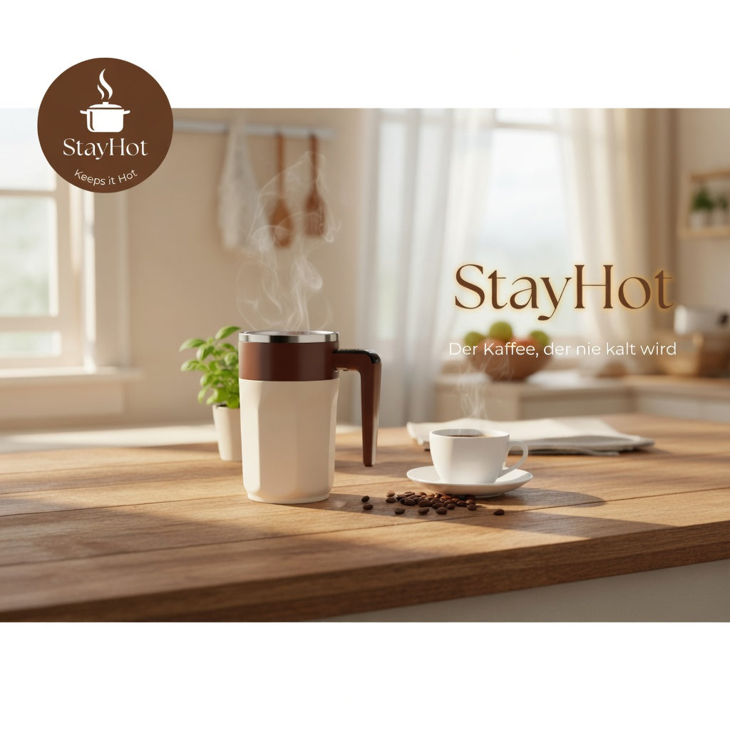 Mit nur einem Knopfdruck aktiviert der StayHot die Warmhaltefunktion und sorgt dafür, dass dein Kaffee lange Zeit perfekt heiß bleibt – ganz ohne Nachbrühen oder Abkühlen.